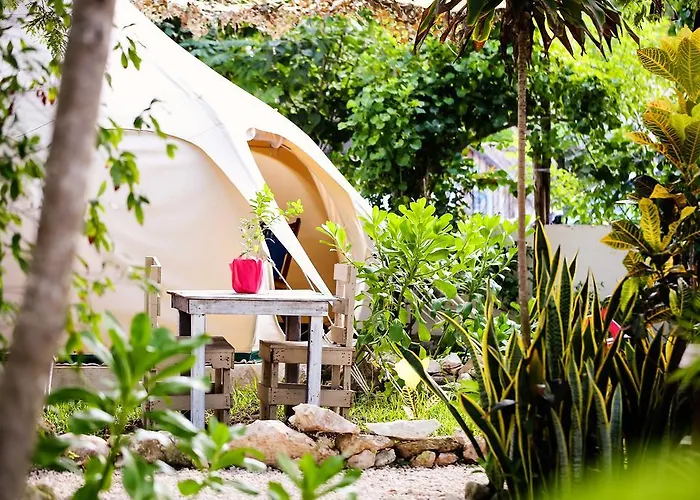 Het 3-sterren Harmony Glamping Boutique Hotel And Yoga Tulum Pueblo is gelegen op 65 km van de luchthaven Playa del Carmen en biedt een buitenzwembad en een yoga studio.
