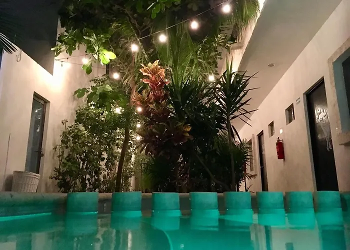 Omringd door tuinen en een tropische tuin is de woning in de wijk Tulum Stadscentrum in Tulum Pueblo. Het 8-kamer hotel ligt op 10 minuten rijden van het Nationaal Park Tulum.